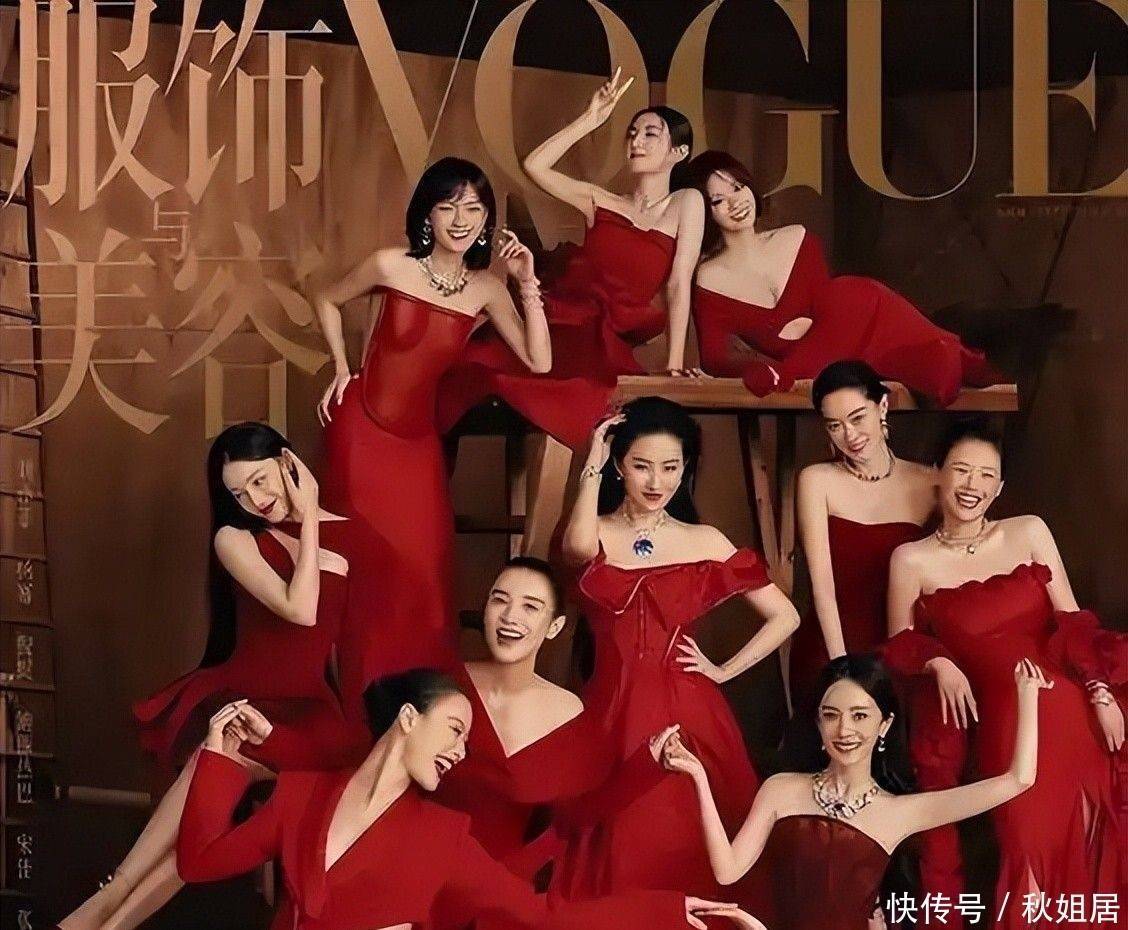 3. 此前VOGUE为庆祝创刊20周年策划特别封面时,当一组女星集体亮相拍摄合影的画面曝光后,大众的第一反应便是聚焦于谁应当占据视觉中心位置。